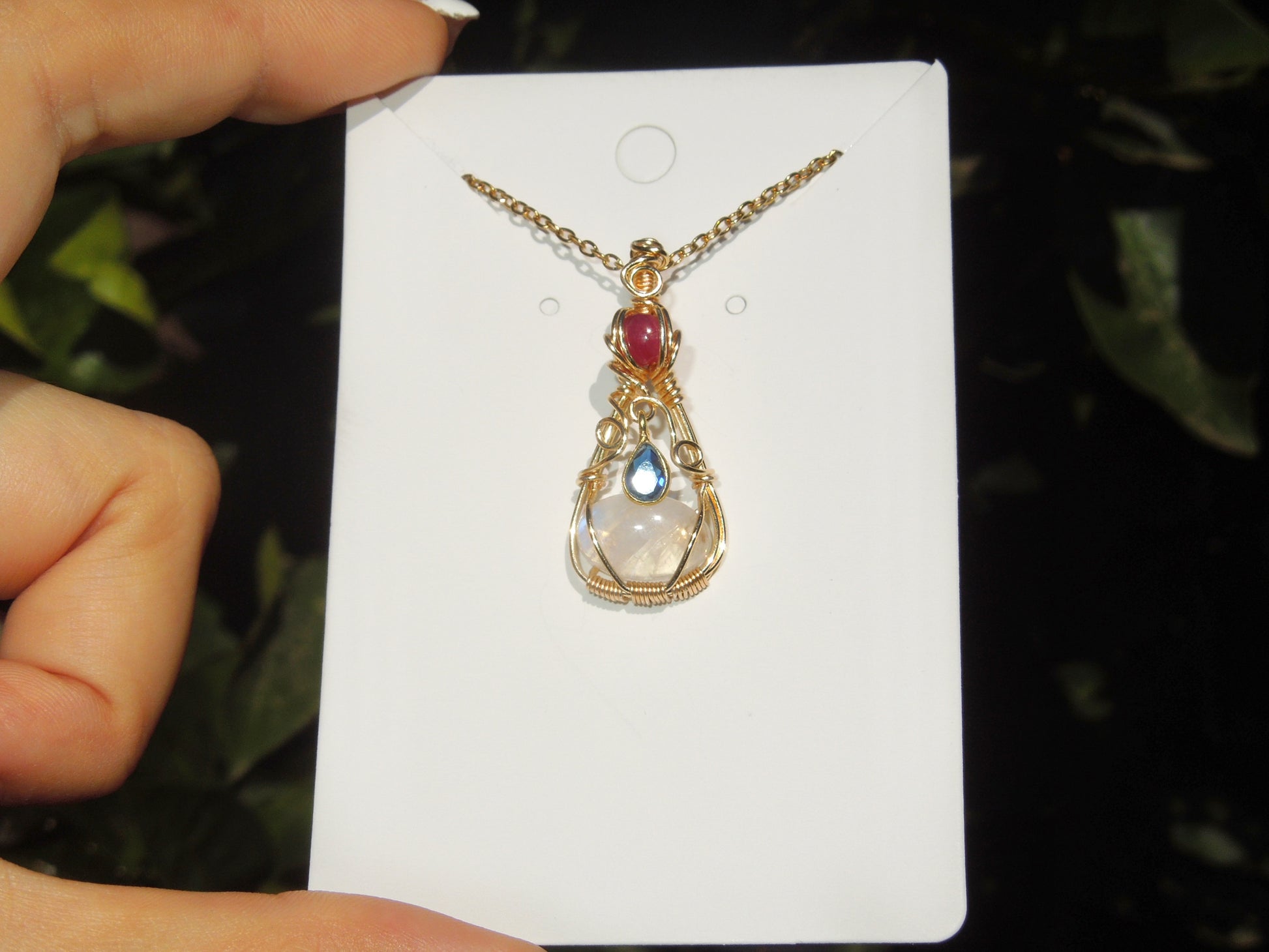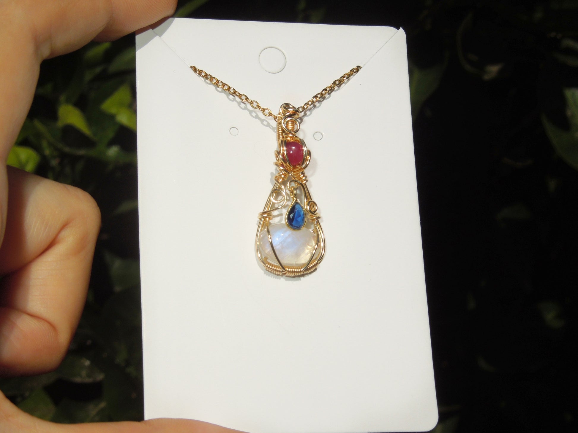 Made with Moonstone, Ruby, & blue Sapphire charm.